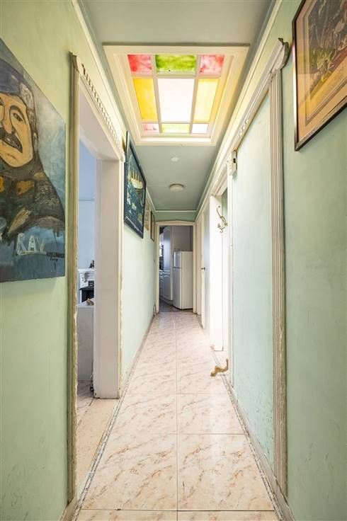 In een rustige, residentiële woonwijk met brede straten en veel parkeerplaats, vind je dit hoekappartement op de tweede en bovenste verdieping van een kleinschalig gebouw. Je komt er binnen in de betegelde hal, waar je een koepel hebt, en een apart gastentoilet met lavabo.