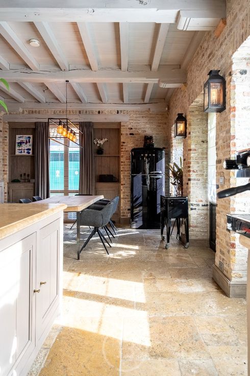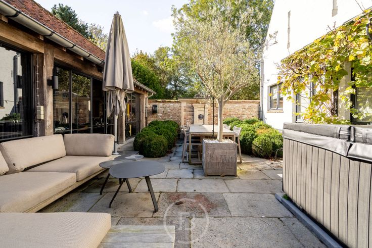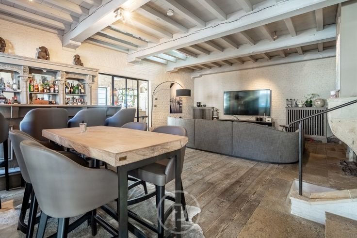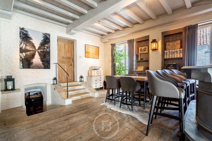 Schitterende stadshoeve in het hart van Damme, afgewerkt met authentieke bouwmaterialen en met veel oog voor detail. Indeling: royale inkomhal met indrukwekkende plafondhoogte tot aan de nok, gastentoilet, ruime woonkamer, aparte bureau, een volledig uitgeruste leefkeuken met eetruimte die aansluit op het terras en de binnenplaats. 1e verdieping: master bedroom met hoge nok, dressing en douchekamer, 2e slaapkamer met eigen douchekamer, 3e slaapkamer met aparte badkamer (ligbad en douche). 2e verdieping: 4e slaapkamer. Bijzonderheden: unieke wijnkelder en garage voor twee wagens.