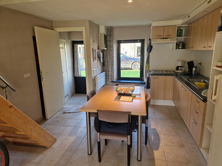 Elle se compose au rez-de-chaussée d’un hall avec wc, d’un séjour équipé d’un poêle à bois ouvert sur la cuisine.