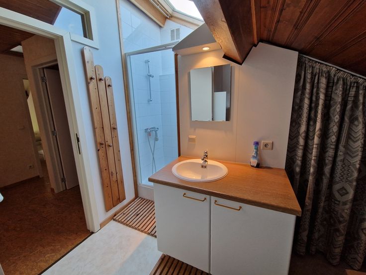 L’étage dispose de 2 chambres et d’une salle de bain.