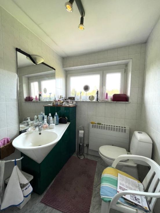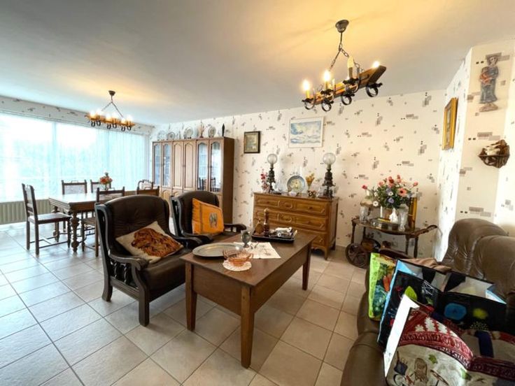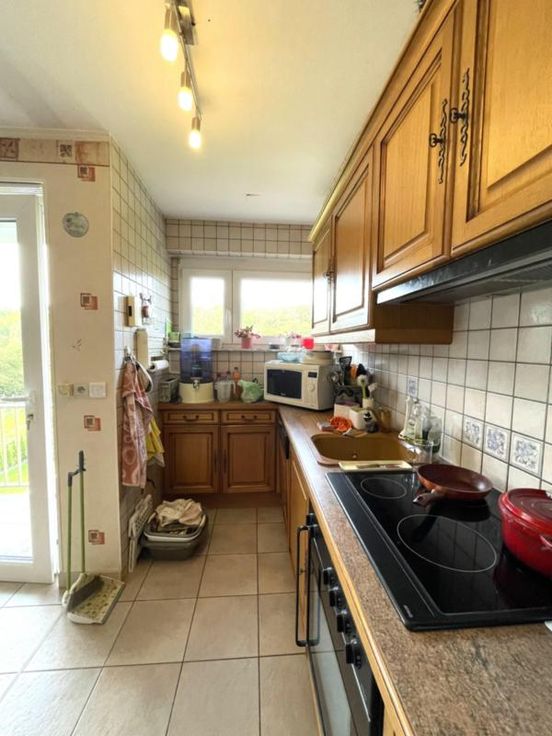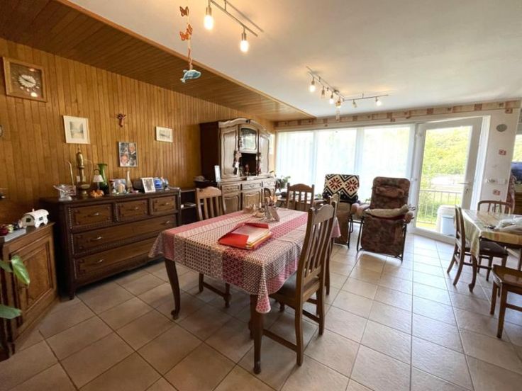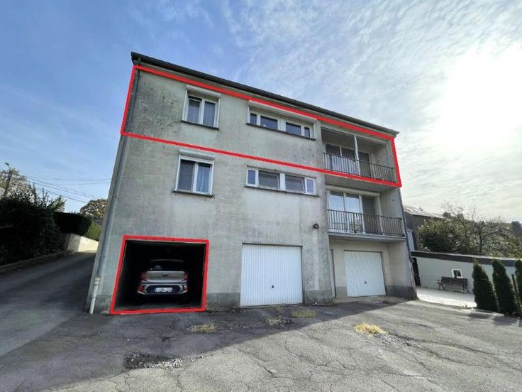 LORRAINE : Province de Luxembourg 6780 LONGEAU Un ensemble immobilier composé de 2 appartements (un seul lot) situé au 1er étage de la Résidence « Térésina » (3 ch, possibilité d’en faire 4) disposant d’un garage (un emplac. voiture, 15 m²), 2 caves (11 m² chacune), balcon à l’avant (EST), balcon à l’arrière (OUEST) et un jardin (OUEST) sur 32 ca. Composition du bien : 1er étage : hall, séjour (salon et sàm) avec coin cuisine équipée (1996), second séjour (salon et sàm) avec coin cuisine non-équipée, 3 ch, sdd (douche, meuble avec lavabo et WC), sdb (baignoire, lavabo et un WC) et 2 balcons. Combles : sdd (douche, meuble avec lavabo et WC), espaces de rangement et spacieux grenier aménagé. Rez-de-jardin : 2 caves et garage (porte élec). Que ments complémentaires : Châssis PVC avec dble vitrage (2009), chauffage mazout (chaudière « Viessmann », cuve de 1.100 L), sols carrelés/parquet flottant/vinyle en fonction des pièces, compt élec simple horaire, racc. aux égouts, volets électriques (à l’exception de la sdb et du coin cuisine non-équipée), toiture en Polytuile et charpente en sapin, ... Bon état d’entretien ! Sup. hab. : +/- 122 m² Cet appartement est situé en plein cœur du village de Longeau, à la frontière du GDL (non loin de la France également) et à proximité des centres commerciaux, restaurants, écoles, médecins/pharmacies, banques, autoroutes E411/E25, et de nombreuses activités. Année constr. : 1974 PEB : C - 198 kWh/m² R.C : 1.270 € Prix demandé : 300.000 €