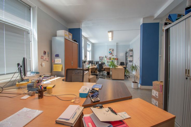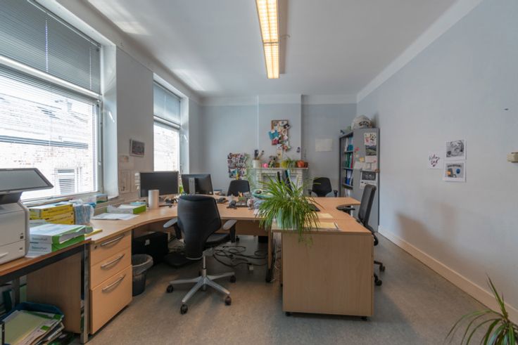 Atome Immobilier vous présente ce magnifique immeuble 3 façades, construit sur 1 are 08 ca, il se contistue actuellement de plusieurs bureaux avec salles de réunion. Cette maison peut reprendre sa destination de départ en "grande maison de ville 7 chambres + bureau, caves et grenier", en bon état d’entretien général, idéal pour immeuble de rapport ou famille nombreuse. Avis aux investisseurs !! A visiter sans tarder ! Frais de division, de géomètre et rebouchage de 2 percements de murs à charge de l'acquéreur. Infos & visites 010/86.75.80 ou info@atomeimmobilier.be.