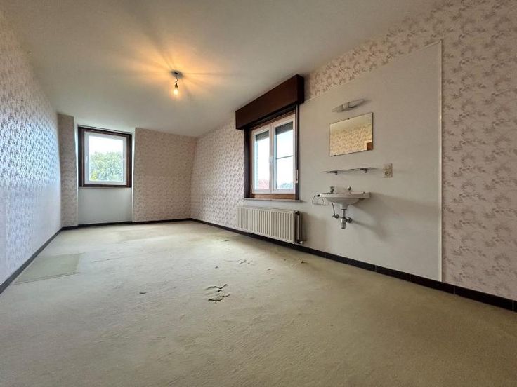 Dit pand wordt op internet verkocht van 04/11/2024 tot 12/11/2024. Uitstekend gelegen te renoveren open bebouwing. Gelijkvloers: inkom, hal, afzonderlijk toilet, leefruimte, keuken, bureau/slaapkamer, werkkamer, garage met zolderruimte, grote tuin en serre; 1e verdieping: nachthal, badkamer, 4 slaapkamers, toilet; zolderruimte. Oppervlakte: 1.456 m². KI: 889,00 EUR. EPC: label F. P-score: B / G-score: A. Niet-asbestveilig. Renovatieplicht. Vg - Wg - Gmo - Gvkr - Gvv. Niet watergevoelig openruimtegebied. G score: A P score: B