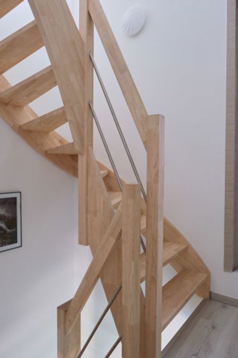Eerste verdieping: 2 slaapkamers en een doucheruimte. Op de 2e verdieping een grote zolderslaapkamer.