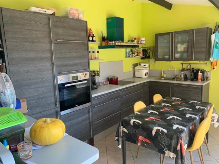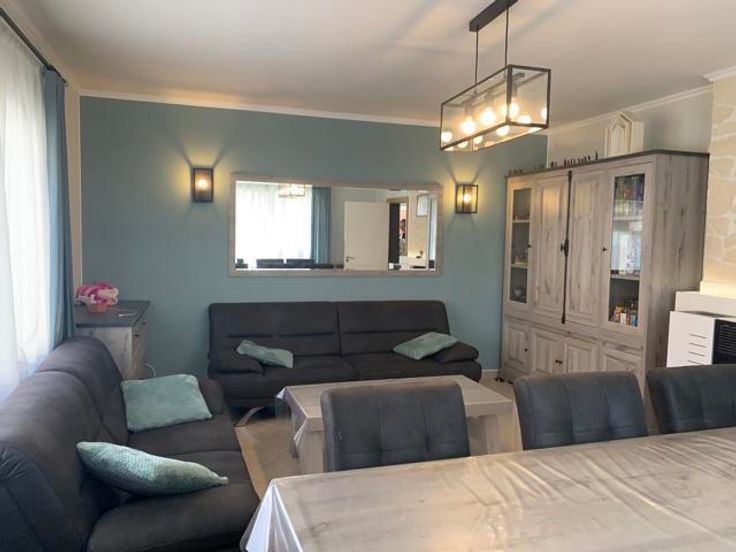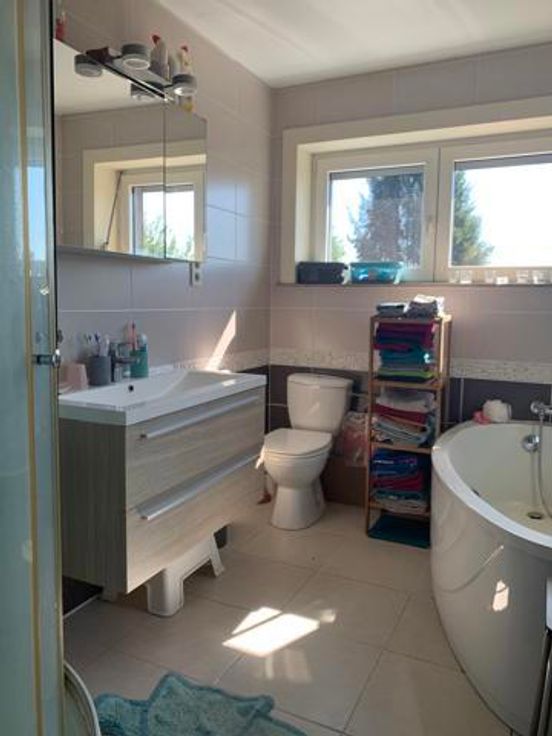 Très bonne maison d'habitation tout confort, maison lumineuse et agréable à vivre. Composition RDC: Hall d'entrée, living/salon avec poêle au pellet, nouvelle cuisine-équipée /salle à manger, buanderie/chaufferie et petit bureau. 1er étage: Hall de nuit, 2 chambres, bureau ou dressing et salle de bain équipée avec WC, douche et baignoire. 2ème étage remis à neuf: Hall de nuit, 2 chambres et salle de bain équipée avec WC et baignoire/douche (en cours de finition, reste à faire quelques enduits et la peinture!) DIVERS: très bonne toiture, CC au Gaz, nouveaux châssis double vitrage avec volets, garage avec fosse, cave à vin, citerne d'eau de pluie avec groupe hydrophore, parking extérieur pour 3 véhicules, parking intérieur, passage latéral, jolie terrasse en pierre bleue et jardin.