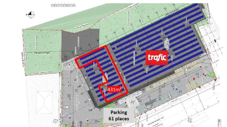 Chimay - Sur la Chaussée de Mons, dans l'ensemble immobilier neuf comprenant le Trafic, IACI vous propose une surface commerciale neuve de 431 m² livrée CASCO.