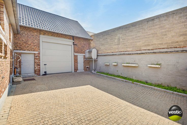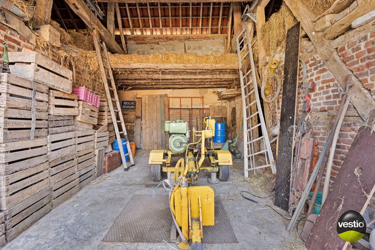 Rondom de binnenkoer bevinden zich diverse stallingen (110m²) allen met bovenverdieping (110m²), en een doorrijpoort geeft toegang tot het zijdelings tuinperceel.