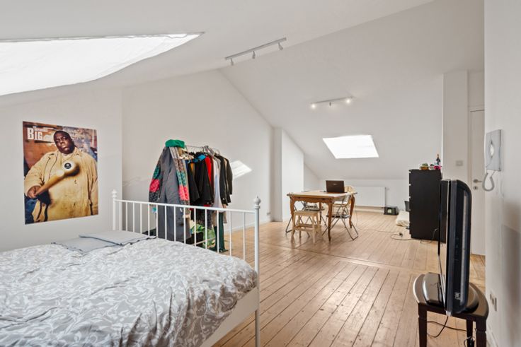 De studio, gelegen op de 4de (en hoogste) verdieping geniet van een efficiënte indeling.