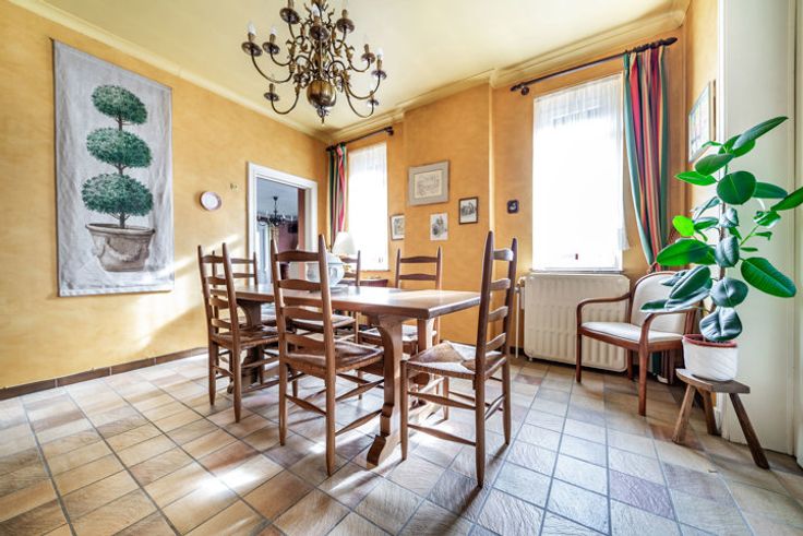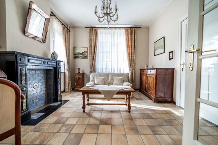 Situation dans un endroit calme à quelques minutes de la grand-route, des arrêts d’autobus, des commerces, d’une grande surface et de toutes les commodités. Au rez-de-chaussée, elle dispose d'un hall d'entrée acceuillant avec vestiaire et toilettes, d’un grand séjour composé d’un salon et d’une salle-à-manger qui peuvent communiquer en ouvrant les deux grandes portes vitrées. Il s’agit d’un lieu de vie idéal pour des moments de convivialité à proximité de la cuisine. Vous profiterez aussi d’un deuxième séjour avec une cassette à bois. Cet endroit est parfait comme espace intime pour lire, regarder la TV ou faire du télétravail. Aux étages, vous disposerez de cinq chambres spacieuses pour accueillir confortablement votre famille, une salle de bains et un WC séparé. De plus, un grenier aménageable est accessible depuis le palier. Au sous-sol, trois caves offrent un espace supplémentaire à usage de buanderie et pour le rangement. La terrasse et le jardin sont très agréables pour profiter des beaux jours. Cet investissement est idéal pour les personnes qui recherchent