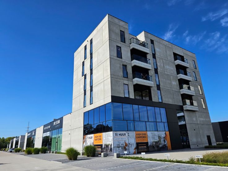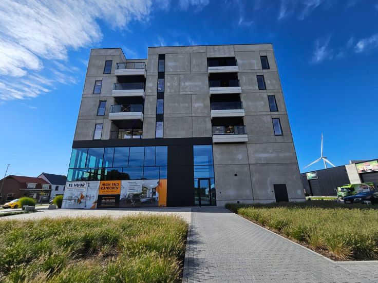 Dit kantorencomplex is de laatste fase van dit project Bedrijvencampus Pelt ( 71 eenheden ) en dit pand omhelst 12 kantoren ( elk met een apart huisnummer ). De bovenste 2 verdiepingen zijn ingedeeld naar 4 kantoren tussen 75 & 90 m² per verdieping. De onderste 2 verdiepingen zijn ingedeeld naar 2 kantoren tussen 155 & 176 m² per verdieping. Elke kantoorruimte is instapklaar en beschikt over een eigen keuken, twee toiletten, domotica,…. Met standaard vloerverwarming en geothermische diepteboringen zijn deze kantoren erg energiezuinig. In het complex zijn voldoende gemeenschappelijke parkeerplaatsen voorzien. Bij elk kantoor horen twee eigen parkeerplaatsen.Uniek aan het kantorencomplex van Bedrijvencampus Pelt is de virtuele receptie van het Leuvense softwarebedrijf Bringme. Deze innovatieve toepassing biedt medewerkers, koeriers en bezoekers een contactloos en dus veilig onthaal bij aankomst. Een virtuele receptionist scant elke medewerker en bezoeker en begeleidt hen doorheen het kantoorgebouw.