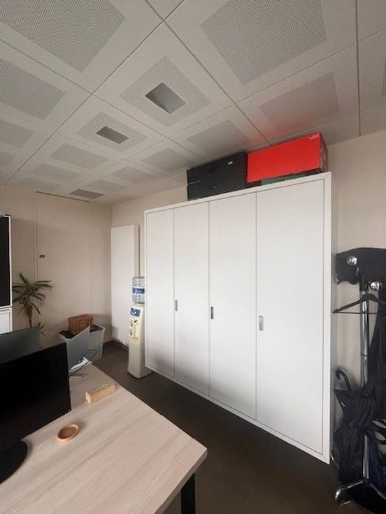 Circa 60-65 m² oppervlakte bestaande uit verschillende bureelruimtes, apart toilet met handlavabo, ingerichte aparte keuken. Alarm aanwezig, plafondverlichting, ingebouwde kasten.