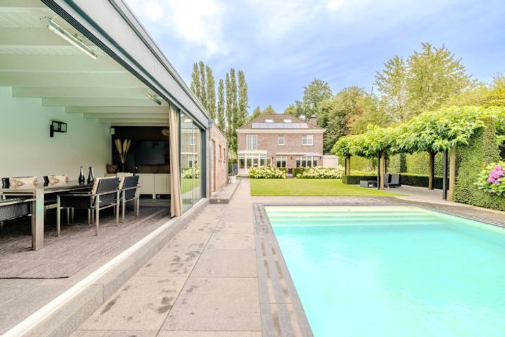 PLAN NU UW BEZOEK VIA JUDITH@PALTON.BE OF VIA 00324 93 30 52 65. Deze stijlvolle, tot in de puntjes afgewerkte villa is rustig gelegen op een perceel van 1.020m², op ideale locatie nabij bossen en op wandelafstand van centrum en scholen! Ontdek deze villa, een parel van ongeëvenaarde klasse. Deze biedt u alle comfort die u nodig heeft om te wonen, werken en te ontspannen.We betreden via de fraaie voordeurpartij de woning met de imposante inkomhal waar we toegang hebben tot vestiaire, toilet en het bureau.Via de dubbele deuren komt u in de living met een klassevolle vloer, hoge plafonds, grote raampartijen en zicht op de privacy biedende tuin met zwembad! Deze living met haard verleent toegang tot enerzijdsT V kamer dewelke afgesloten kan worden door 2 ensuite deuren en anderzijds tot de volledig geïnstalleerde recente keuken. Het bureau zorgt ervoor om met plezier vanuit huis te werken.Via de statige trap komt u in de nachthal waar 4 slpk en 2 badk zijn. Waarvan de master bedroom met openslaande deuren naar terras en de luxe dressing De 2 badkamers zijn volledig ingericht! Op de zolderverdieping, via vaste trap bereikbaar, treft u een polyvalente ruimte. Last but not least in de omheinde tuin met prachtige terrassen is het heerlijk vertoeven en relaxen. Om sportief te zijn of te ontspannen is er het zwembad met daarnaast een pool house en een ingerichte buitenkeuken! Laat u betoveren door de charme en comfort van deze villa.