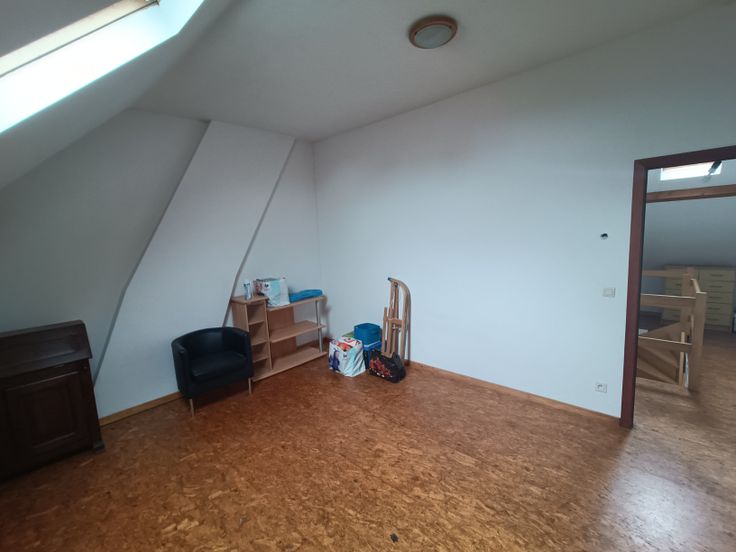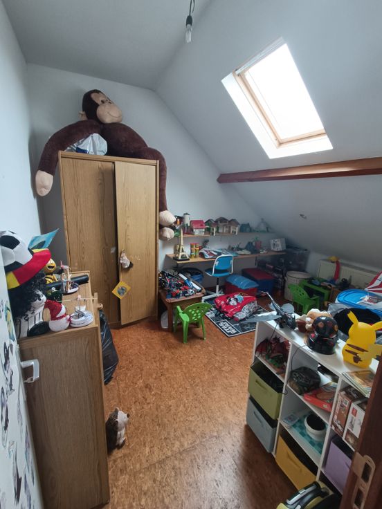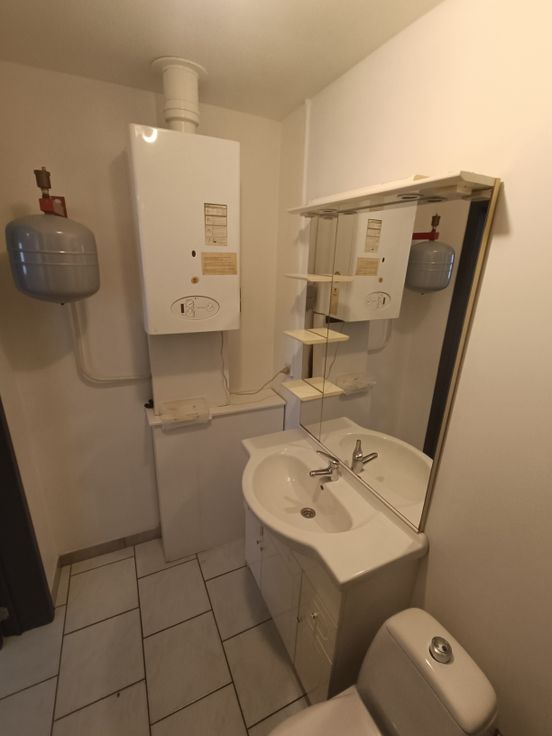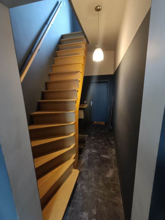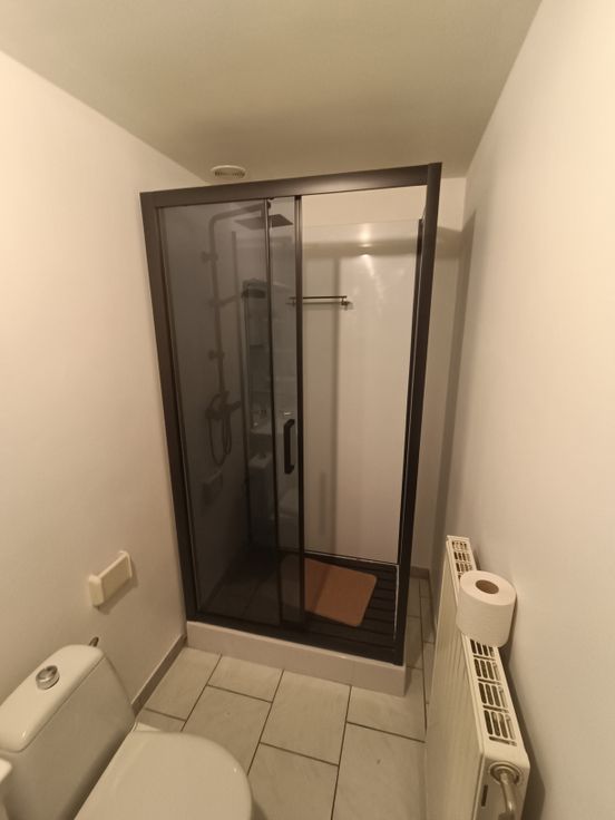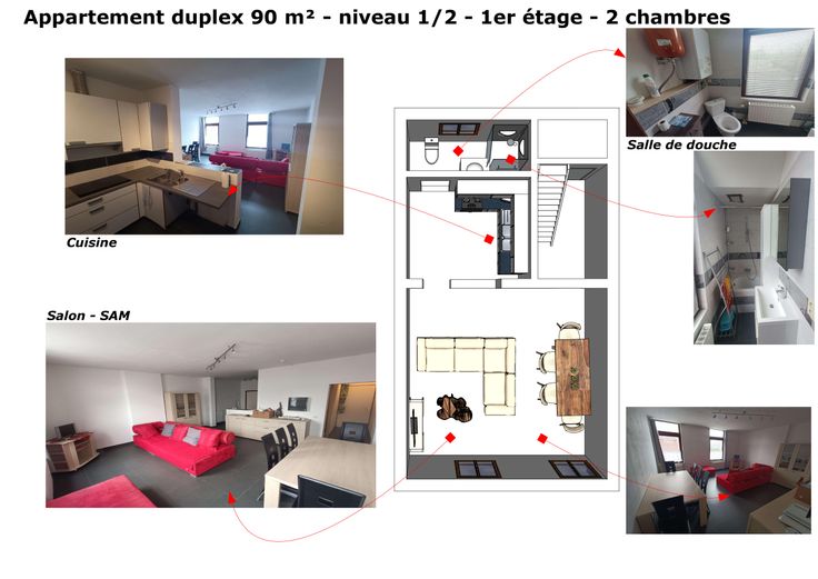 Appartement duplex: une salle de douche, 2 chambres, une cuisine équipée et un espace salon, sam