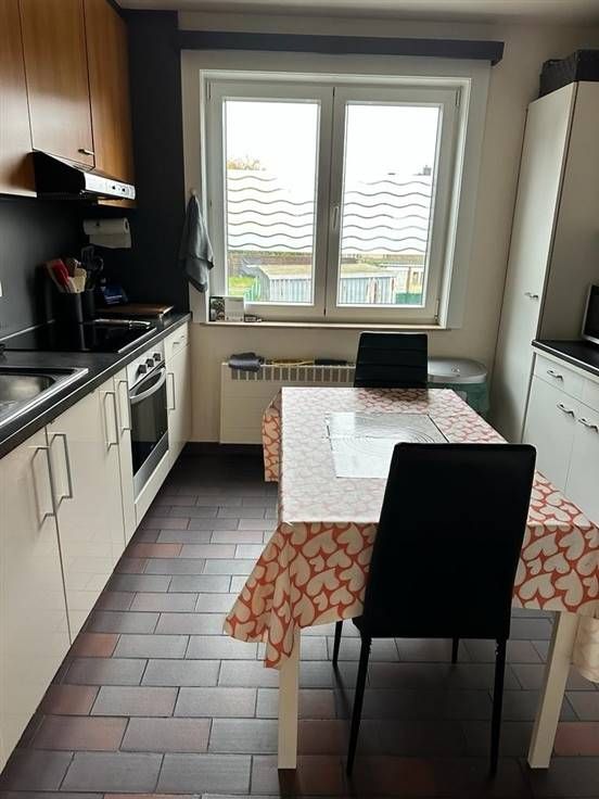 Het appartement op de 1 e verdieping heeft een inkomhal, ruime living met aansluitend een ingerichte keuken, 3 slaapkamers en een badkamer.