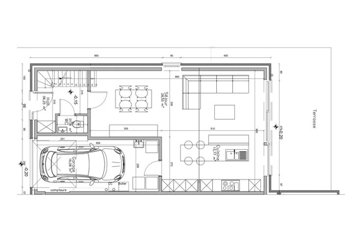Caractéristiques techniques : châssis PVC double-vitrage, porte de garage motorisée, escalier en hêtre, chauffage central au gaz, chaudière avec boiler séparé, radiateurs avec vannes thermostatiques, thermostat, VMC double flux, carrelage dans la pièce de vie et dans la salle de bain, faïences autour de la baignoire ainsi que dans la douche, parquet dans les chambres, carrelage anti-graisse pour le garage, jardin non engazonné, tout à l'égoût, puits de contrôle, citerne d’eau de pluie de 10.000 litres (pompe comprise), 6 panneaux solaires, parking privatif en pavés autobloquants, terrasse carrelée, clôture, garage et portillon