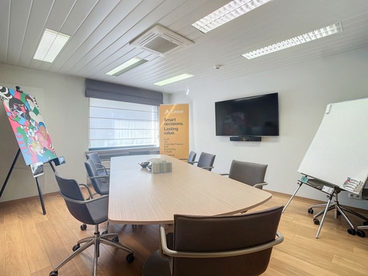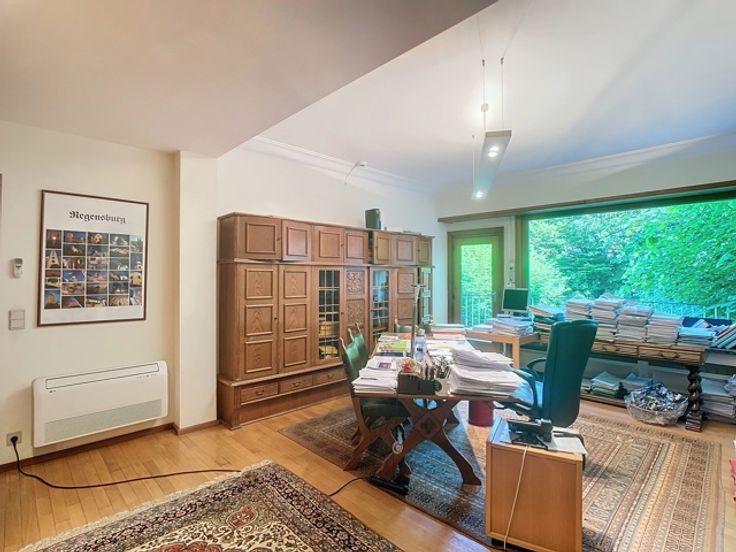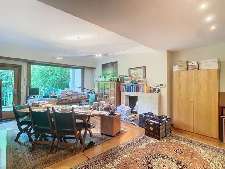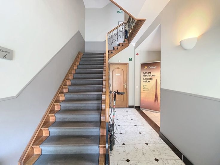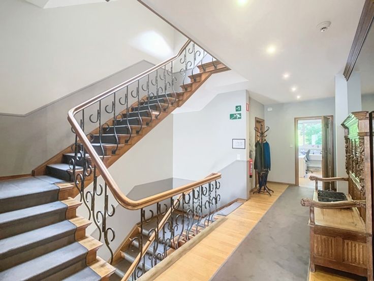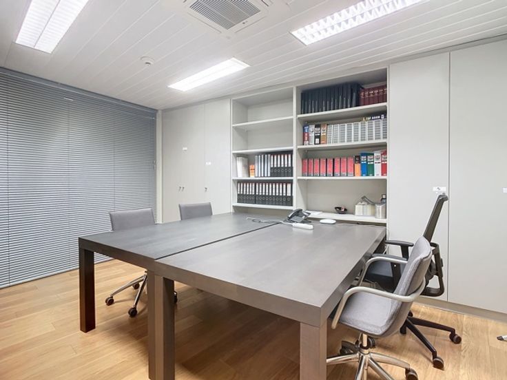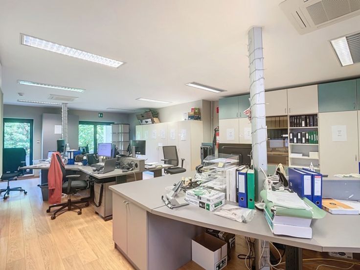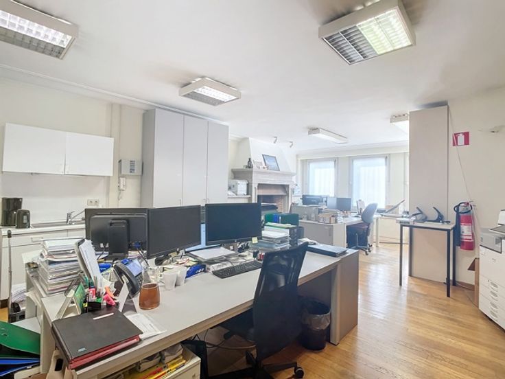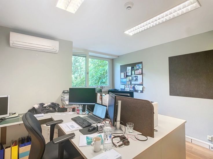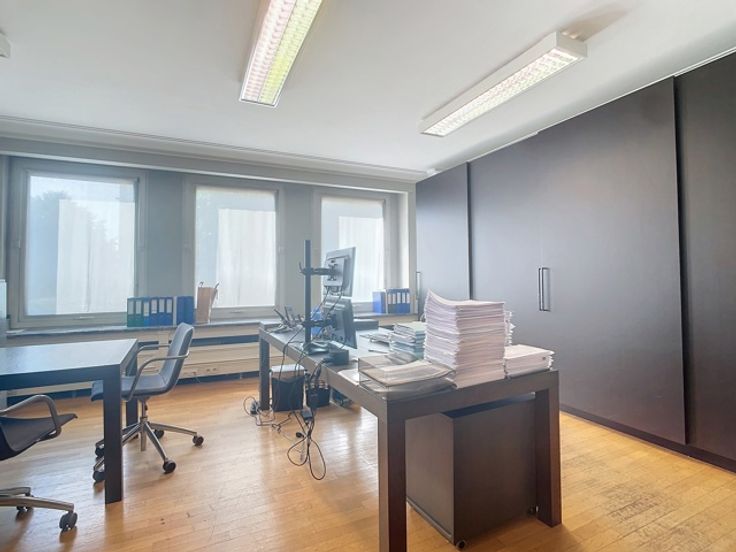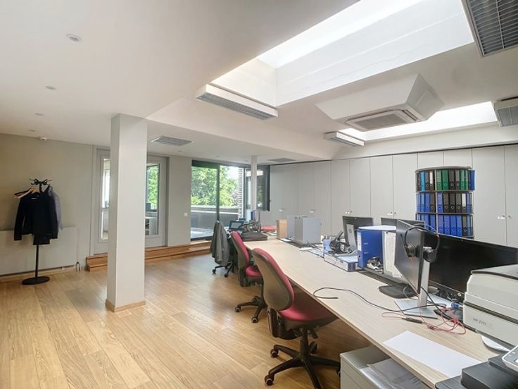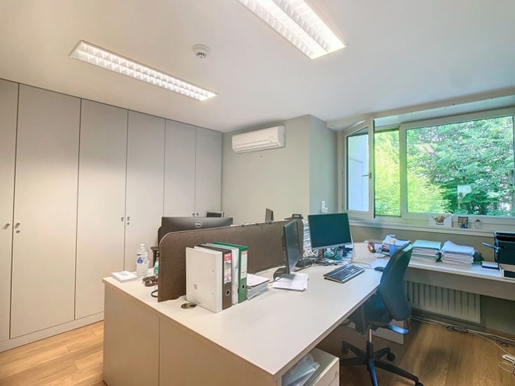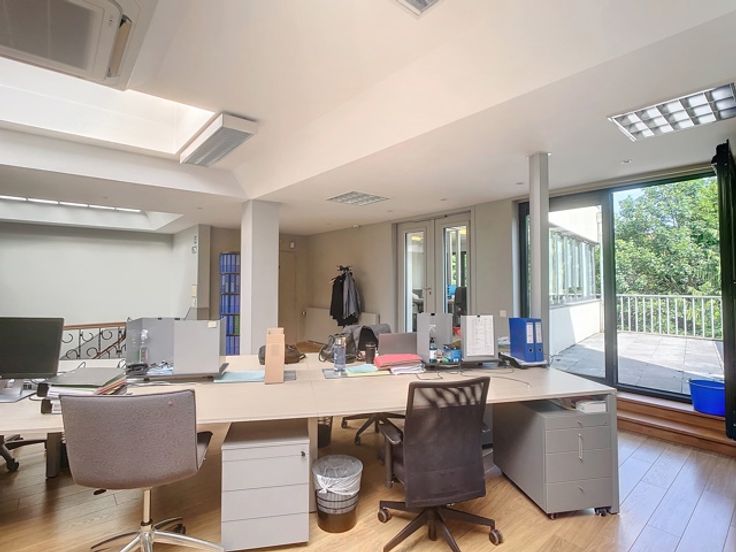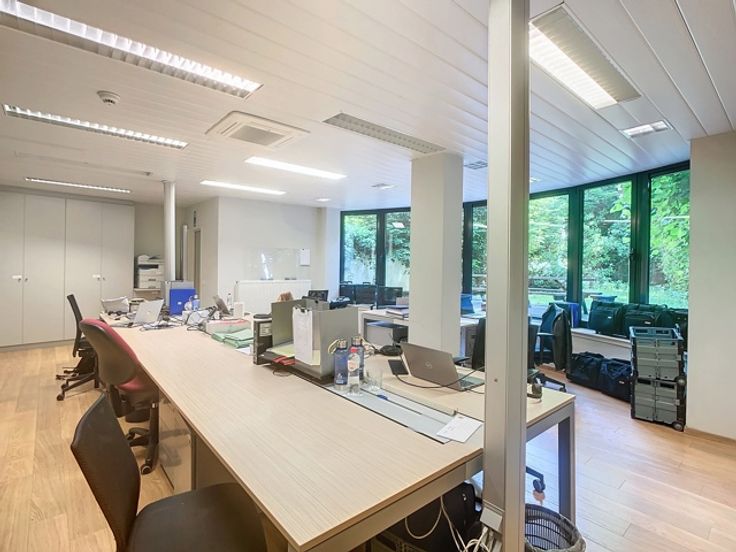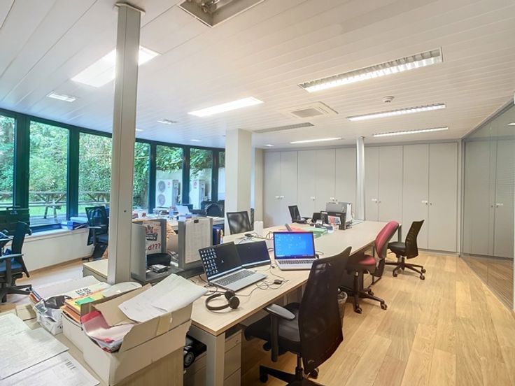 Het gebouw omvat verschillende verdiepingen kantoren. Het beschikt over verschillende terrassen die uitkijken op de prachtige groene tuin. Er is ook een daktuin aanwezig. Daarnaast is er een royale kelderruime dat gebruikt kan worden als opslag en parking.