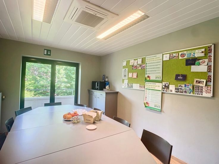De ruime en flexibele indeling van het pand, met diverse verdiepingen voorzien van terrassen en een daktuin, biedt voldoende ruimte voor verschillende werkplekken en functies. Bovendien straalt het gebouw authenticiteit uit door de combinatie van historische charme met moderne voorzieningen, wat een unieke werkomgeving creëert.