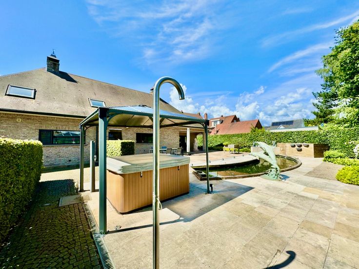 Deze eigendom is uniek: Zalige binnenruimtes waaronder 6 slaapkamers waarvan 3 op het gelijkvloers en 1 mancave, kwalitatief betonnen overdekt zwembad, ruim bijgebouw met sauna, natuursteen is al zijn facetten en technisch in nieuwbouwstaat. Tot op vandaag is alles perfect onderhouden zowel binnen als buiten.