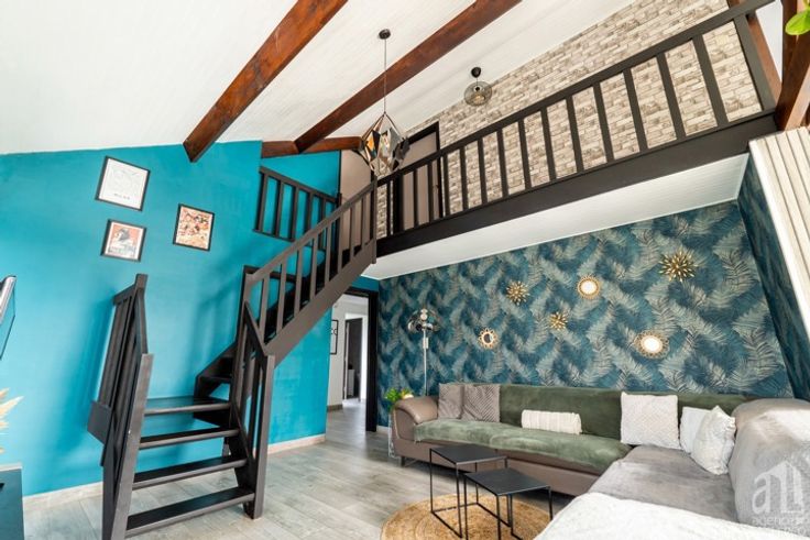 Au premier étage : un hall en mezzanine ouvert sur le séjour dessert trois chambres.