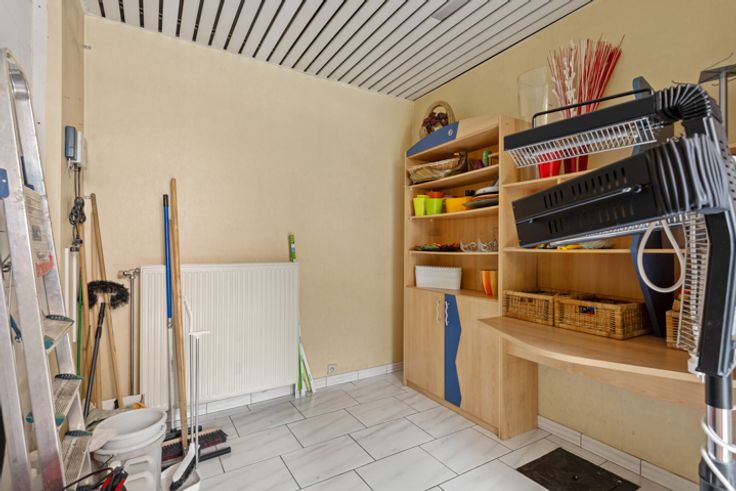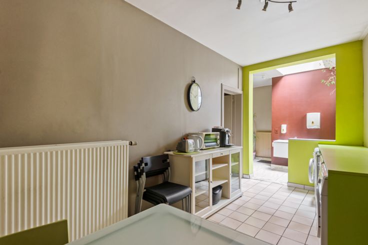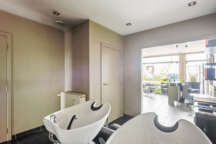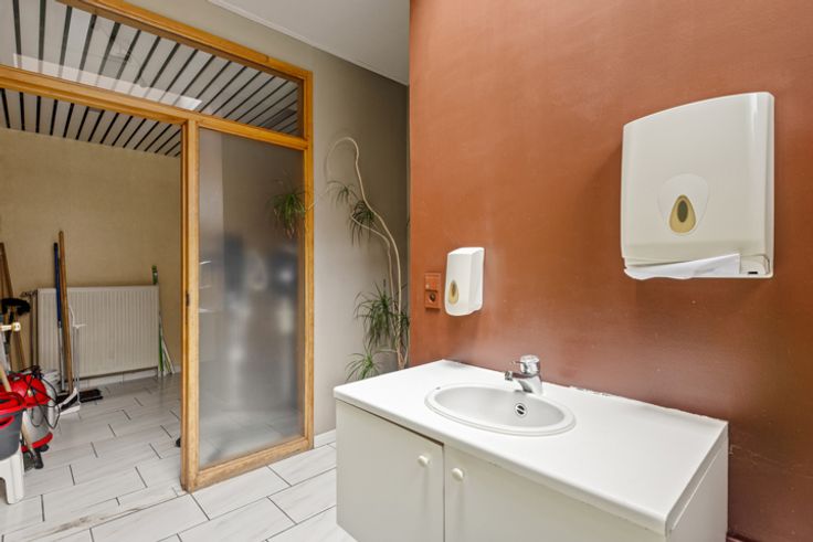 Dit polyvalante handelspand ligt in de onmiddellijke omgeving van een openbare parking, invalswegen en openbaar vervoer. Het is al volgt ingedeeld: Grote open ruime vooraan, halverwege een bijkomende open ruimte en een aparte kamer, achteraan ruime keuken, toilet en technische ruimte.