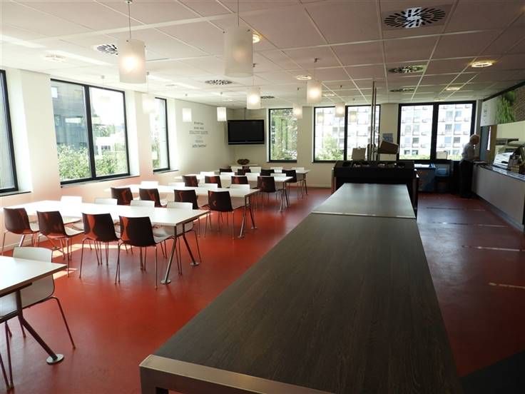 De eerste verdieping wordt verhuurd aan een Japanse multinational, Canon, die deze verdieping een prachtige Japanse stijl heeft gegeven.