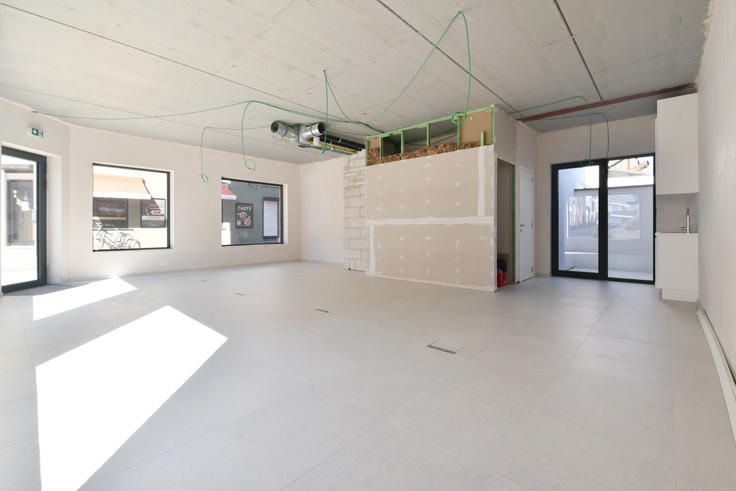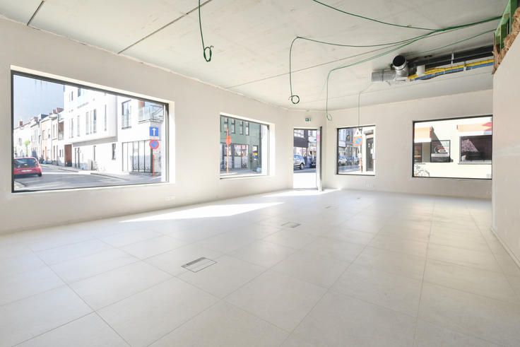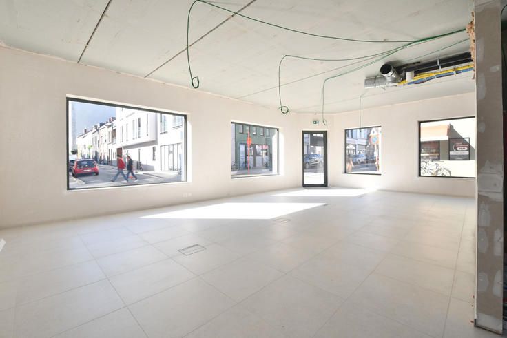 Deze handels- of praktijkruimte van ca. 72 m² is gelegen op de hoek van residentie Z51, een recent opgeleverd nieuwbouwproject in Gent. De locatie biedt een grote visibiliteit dankzij de passage op de Zwijnaardsesteenweg met haar veelzijdig aanbod aan diensten, winkels, restaurants en recreatie allerhande. De residentie geniet een bijzonder vlotte bereikbaarheid dankzij de nabijheid van de R40 richting autostrade (E40/E17). Bovendien is het station Gent-Sint-Pieters gelegen op wandelafstand en zijn er diverse bushalten en tramhalten gelegen in de nabije omgeving. De handelsruimte is gelegen op de hoek van het gebouw en is voorzien van grote raampartijen. De indeling is als volgt: via de inkom op de Zwijnaardsesteenweg bereikt u dehandelsruimte voorzien van een bergruimte, een apart toilet en een keuken met aansluitend een terras. Het handelspand is afgewerkt met een keramische vloer en voorzien van vloerverwarming, centrale verwarming op aardgas, elektriciteit, UTP aansluitingen en leidingen voor het plaatsen van een eventuele douche. Bovendien zitten de aansluitingen voor het ventilatiesysteem type D klaar voor een inrichting op maat. E-Peil: maximaal 30 (Klasse A) / Mobiscore: 9,6 Onmiddellijk beschikbaar. Benieuwd naar deze handelsruimte in Gent? Maak zeker een afspraak via hanna@landbergh.be of 09 225 25 24 www.landbergh.be