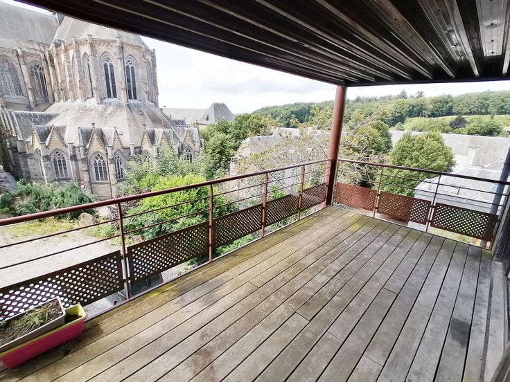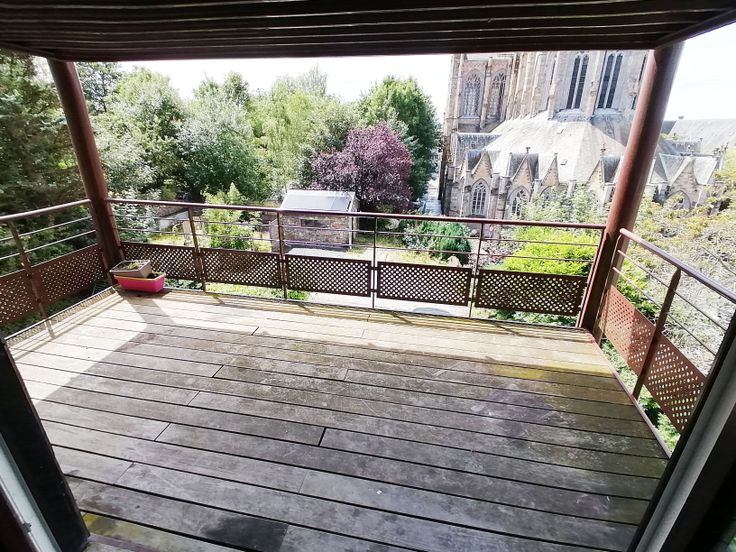 La terrasse donne une vue imprenable sur l'arrière de la basilique. L'immeuble est équipé d'un parlophone et le parking est facile, dans la rue ou sur l'aire de parking privé partagée avec les autres locataires.
