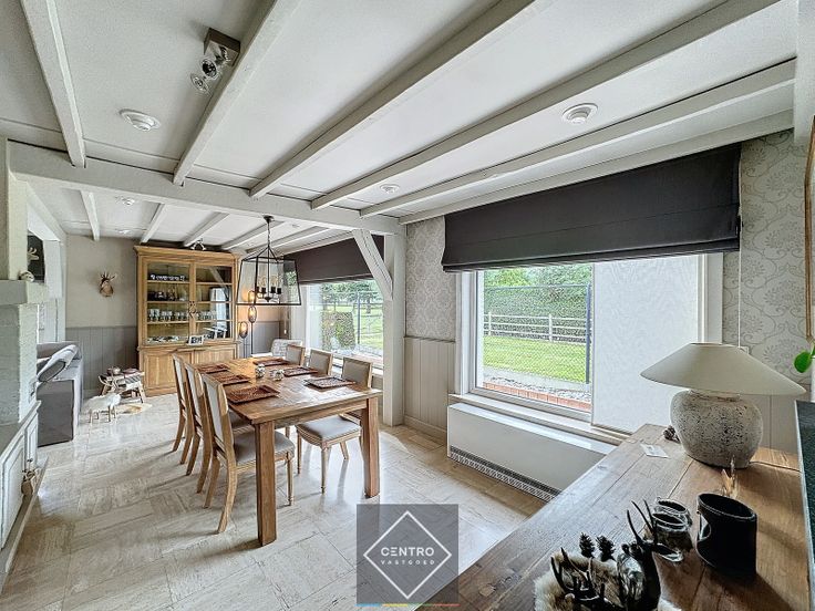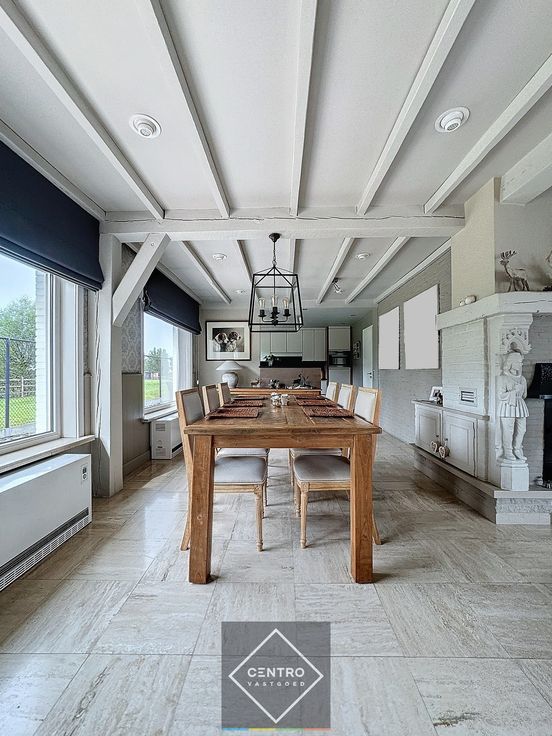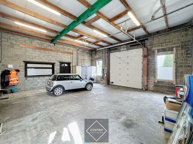 Benaderende OPPERVLAKTEN: Constructie - bewoonbare oppervlakten Woning: 160m² (glv.) + 100m² (1° V.) Garage (aansluitend aan de woning): 100m² Magazijn: 300m² Verharde koer: 600m² Grondoppervlakte Totale grondoppervlakte: 1.650m²  Aantal parkeerplaatsen: 3 + garage van 100m² INDELING: Woning Gelijkvloers (260m²): Ruime inkomhal - lichtrijke woonkamer met open haard (hout)- volledig geïnstalleerde open keuken (met granieten werkblad en alle toestellen, waaronder keramische kookplaat, dampkap, oven en microgolf) - zitplaats/bureel met traphal - badkamer met ligbad, wastafel, toilet en spiegelkast - ruime slaapkamer - kantoorruimte met afzonderlijke inkom, voorzien van ingemaakte kasten en bureel - voorraadkamer/wasplaats - garage (100m²), met vrije hoogte van 4m, automatische (met afstandsbediening) sectionaalpoort (h: 3,8m), afzonderlijke badkamer (ligbad, douchecabine, wastafel en toilet) en tussenverdieping (25m²) - Zuidgericht & volledig aangelegde tuin met terrassen (volledig omheind) - 3 afzonderlijke parkeerplaatsen voor de deur. Eerste verdieping (100m²): Nachthal - 3 slaapkamers - badkamer (wastafel met toilet, nog mogelijkheid om een douche te plaatsen) - ruime berging. Magazijn: Magazijn/opslagruimte met vrije hoogte van 4m, voorzien van 2 automatische (met afstandsbediening) sectionaalpoorten (h: 3,8m). Koer: verharde en volledig omheinde koer met schuifpoort en verlichting. Aanwezige rekken kunnen over genomen worden! AFWERKING: Won... Renovatieplicht: onbekend