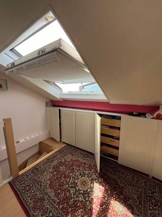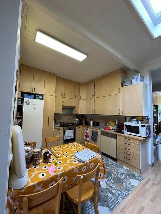 1e verdieping: hal met toegang tot 3 slaapkamers en doucheruimte + wastafel + wc + verwarmd handdoekenrek. 2e verdieping: slaapkamer onder dak met en-suite badkamer + wastafel + wc + verwarmd handdoekenrek, kasten onder dak. Gesloten huurgarages op 50 m, gemakkelijk parkeren op straat, oplaadpunt voor elektrische auto's voor het huis. Rustige, overwegend residentiële wijk. Alle voorzieningen in de buurt, scholen, universiteit, winkels, apotheek, ziekenhuis. Bussen 66, 45, 63, 80 en De Lijn. Gemakkelijke toegang tot belangrijke routes.