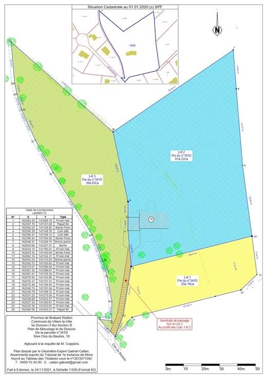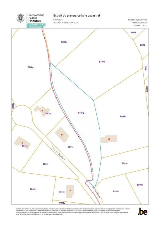 GROEN PERCEEL OP PLAN. Uitzonderlijke ligging van dit perceel als gevolg van de splitsing van een prachtig landgoed. Het perceel ligt op een steenworp afstand van Bois Cochet, in de Clos du Baulois, en ligt deels in een woonzone en deels in een landbouwzone. Het perceel van 38a63ca dat wordt verkocht is kavel 3 van de verdeling die in groen is aangegeven op het plan van de landmeter. Breedte vooraan: 27,51 meter. Diepte links: 69,22 meter. Diepte rechts: 74,75 meter. Breedte aan het einde van het perceel: 21,50 meter. De landbouwzone begint bij de stippellijn op het plan. Er moet natuurlijk een voorontwerp worden ingediend bij de dienst stedenbouw. De boer heeft het perceel verlaten. Een unieke en zeldzame situatie op dit moment! Een bezoek is een must, het voelt als vakantie, als zenitude, als welzijn! Je zult versteld staan! Op een steenworp afstand van de hoofdwegen, VLV STATION! Volledige beschrijving exclusief op www.valdelimmo.be ! Meet- en afbakeningskosten ten laste van de koper.