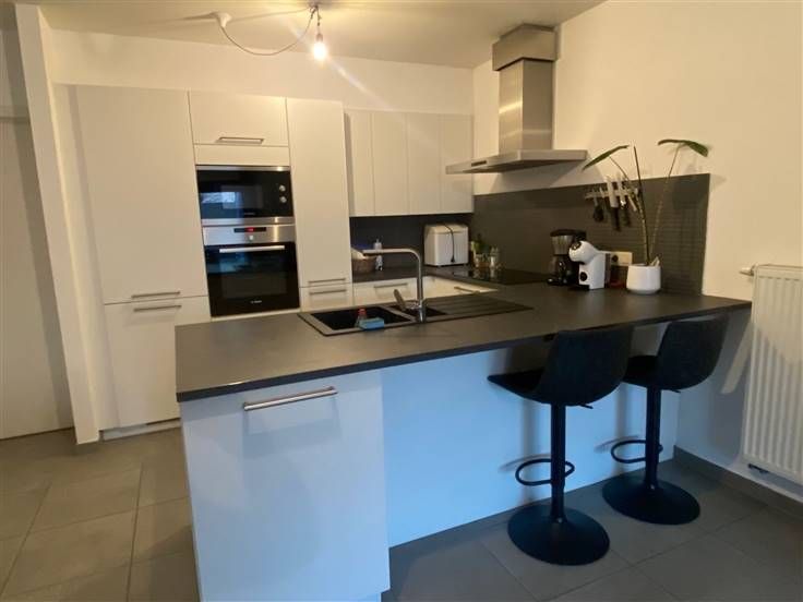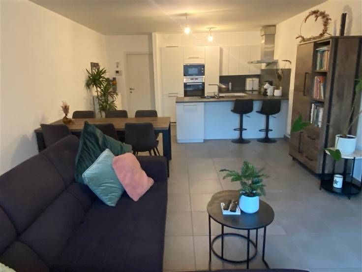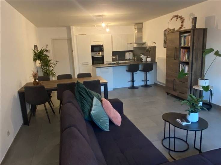 KWALITATIEF, ENERGIEZUINIG EN RECENT GELIJKVLOERS-APPARTEMENT MET 2 SLAAPKAMERS, RUIM TERRAS, TUINTJE EN GARAGEBOX. Ligging in kleinschalige residentie nabij centrum Ruisbroek (Puurs-Sint-Amands) en station met vlotte bereikbaarheid via N16 en A12. Inkomhal / living met eetplaats met super-ingerichte open keuken (totale opp.: 41m²) met toegang tot ruim, zuidoost-georiënteerd terras en tuintje (50m²) / 2 slaapkamers (3,5 x 3,2m; 3,2 x 3m) / douchekamer met dubbele wastafel, douche en wc / berging met wasplaats. Garagebox (met toegang via tuin) / gemeenschappelijke fietsenberging. Lasten: € 45 / maand.
