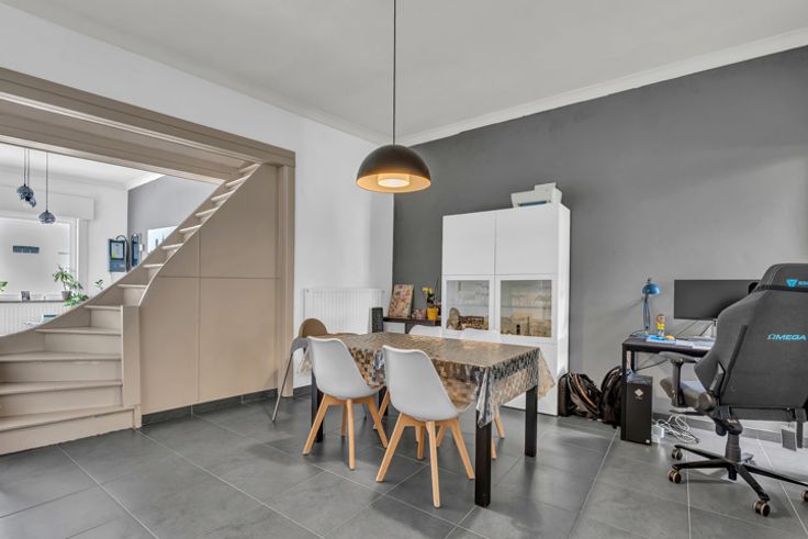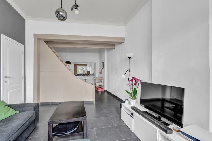 Voor een bezoek of meer info, bel 054 69 39 36 - Op een goede ligging, nabij het centrum van Geraardsbergen bevindt zich leuke starterswoning. Winkels, het treinstation en scholen bevinden zich op wandelafstand. Deze energiezuinige woning werd in 2015 gerenoveerd. Het gelijkvloers omvat een inkomhal, toilet, ruime living met salon en eetplaats, een leefkeuken en veranda. Het verdiep bestaat uit een nachthal, 2 ruime kamers en een badkamer. Via een vaste trap begeeft men zich naar het zolderverdiep dewelke dienst doet als 3e slaapkamer of polyvalente ruimte. Mogelijkheid om een 4de slaapkamer te creëeren! Verder beschikt men over een gezellig terras. Enkele pluspunten zijn alvast: Strategische locatie - Energiezuinig (label B) - CV op aardgas - Buitenschrijnwerk in PVC met dubbele beglazing - Rolluiken - Dak met pannen en isolatie