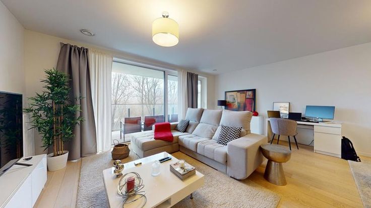 Ideally located in a quiet street, close to numerous shops and public transport (opposite the Cora), J&J Properties offers you this very attractive walk-through apartment with two very pleasant terraces. Located on the 1st floor of a recent building (2016), this light-filled apartment comprises an entrance hall with checkroom and separate toilet, a large living/dining room with access to a first beautiful south-facing terrace (12m²), a fully-equipped Siemens American kitchen (dishwasher, oven, fridge, etc.) and a laundry area. The night area comprises two bedrooms of 15 and 10m² (the larger of which has access to the second terrace) and a spacious bathroom with double sink and heated towel rail. A MANDATORY parking space (+30.000€) and a cellar complete the ensemble. Technical features: PEB B, gas-fired boiler, double-flow ventilation system, double-glazed windows, videophone, individual meters for water, gas and electricity. APARTMENT CURRENTLY LET. Come and visit without delay! REF J&J: 6024905
