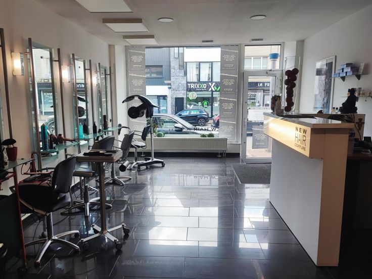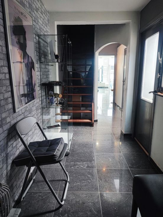 REZ: salon de coiffure, espace détente, vestiaire, cour extérieure, wc séparé et espace cuisine donnant sur une seconde cour.