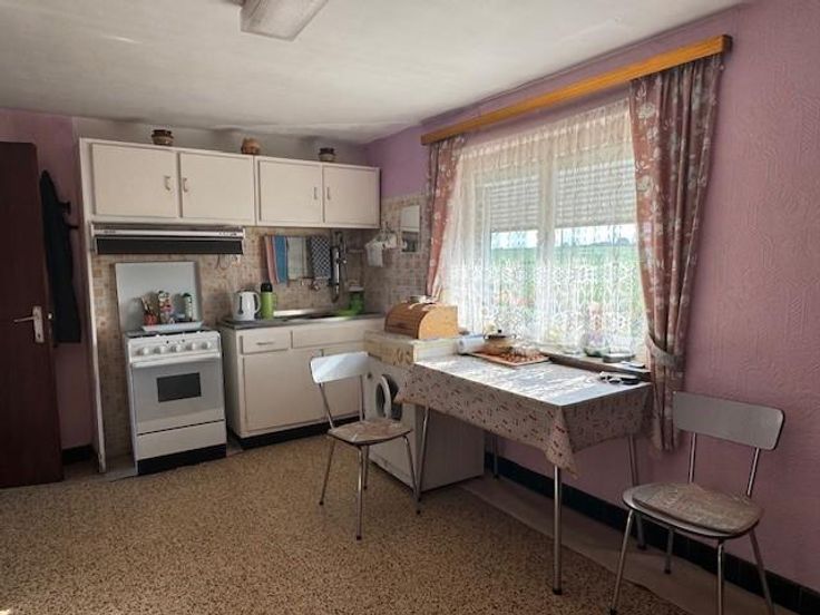 Fermette à rénover avec dépendances et pâtures sur 82 ares 29 centiares. Très beau potentiel. Le bien présente une partie habitation d'environ 115m2 avec passages latéraux ainsi qu'une grand grange (avec étage) et dépendances ( petite étable et remise avec wc) d'environ 220m2 au sol, en zone d'habitat à caractère rural tenant à une petite rue perpendiculaire à la rue Mauvinage et à la Chaussée de Ghisleghien. Une très belle pâture de 18 ares ( tenant à la chaussée) complète l'ensemble pour accueillir des chevaux. Belles vues. Parfait pour vivre à la campagne tout en restant proche du village et des axes routiers. La partie habitation comprend cave, living, salon (un escalier caché permet l'accès au grenier), une cuisine, 2 chambres, pas de grenier sur toute la surface du bâtiment. Raccordement : eau courante, égouttage public, télédistribution, téléphone, citerne ( n'est plus fonctionnelle, nécessite un nettoyage/démoussage). Pas d'installation pour le chauffage de l'eau. Poêle à bois. Le poêle à pellets ne fait pas partie de la vente. PEB : G - Electricité non conforme. Visites renseignements en l'étude. Prix souhaité : 350.000,00€. L'annonce ci-avant ne constitue pas une offre, mais seulement un appel à la négociation lancé aux candidats-acquéreurs.