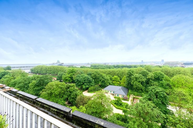 Met een uitzonderlijk uitzicht op het Jubelpark, in een zeer aantrekkelijke residentie, op de 9e verdieping, aangenaam, licht appartement van 190 m² met een mooi terras van 20 m². Ruime ontvangstruimte, volledig ingerichte keuken, 3 slaapkamers, 3 badkamers, kelder, 2 communicerende garages. EPC D