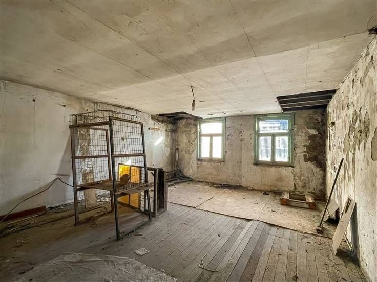 Gelijkvloers: inkomhal, woonkamer, eetkamer, keuken, bakkerij (alles werd reeds uitgebroken), tuin, winkelruimte en koer. Eerste verdieping: overloop, 3 slaapkamers, doucheruimte en keuken (eveneens bereikbaar via trap aan buitenzijde die uitkomt op de koer). Zolder/tweede verdieping: te bereiken via vaste trap. In keuken op de eerste verdieping is ook een zolderruimte te bereiken met een ladder. Kelder: stockage kelder onder woning.