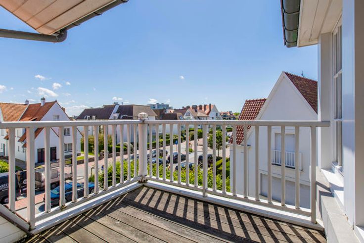 Volledig gerenoveerde penthouse met aangename terrassen in een villa residentie op enkele stappen van de zee. Indeling: inkom met wc en vestiaire, living en eetkamer uitgevend op 2 terrassen waarvan één overdekt terras, aparte keuken, 2 slaapkamers en 2 badkamers. Mogelijkheid om een gesloten garagebox in de residentie aan te kopen. EPC: 282 kWh/m²