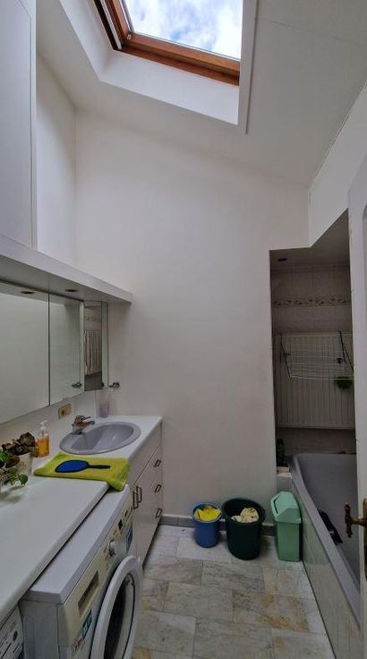 Deze ruime woonst (duplex van 156 m²) met lichtrijk handelsgelijkvloers heeft een groot zonnig terras en prachtige diepe tuin. Het pand is gelegen op een absolute toplocatie in het centrum van Mortsel. Op het gelijkvloers bevindt zich het handelspand dat thans verhuurd is tot 2026. Indeling: inkomportaal, 80 m² handelsruimte en 12 m² bergruimte, een keukentje en een apart toilet. Er is een aparte inkomhal met een trap naar het woongedeelte en toegang tot de tuin. Op de eerste verdieping vinden we een overloop, hal met vestiairekast, een apart toilet, een badkamer (ligbad, douche en lavabo), een L-vormige living op parket, een aparte eetplaats die aansluit aan de open keuken en een ruim terras met buitentrap naar de weelderige tuin met tuinh de verdieping vinden we een overloop, twee zeer ruime slaapkamers en een douchekamer met toilet en lavabo. Het hoofdgebouw bevat een 3-tal bergkelders. C.V. op aardgas. Zeer gunstige ligging in een autoluwe verbindingsstraat tussen de Statielei en de Mechelsesteenweg, op een steenworp van openbaar vervoer, winkels en diverse scholen. In deze verkoop is tevens 1 overdekte autostaanplaats inbegrepen, in een nabijgelegen garagecomplex, Pieter Reypenslei 42. EPC woning: D (349 kWh/m²) / EPC handelsgelijkvloers: D. G-score: A / P-score: A. Kadastraal inkomen (niet geïndexeerd): 1.235 (woning) +74 euro (garage). Extra info van de syndicus m.b.t. de garage op aanvraag bij het notariskantoor. G score: A P score: A
