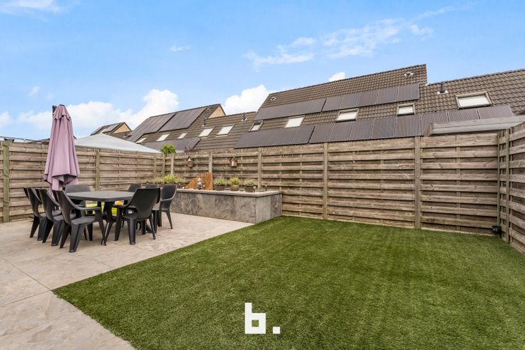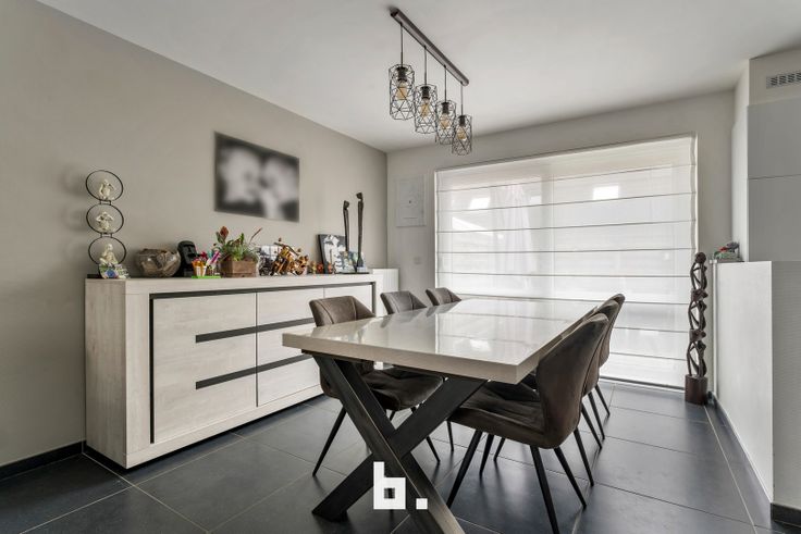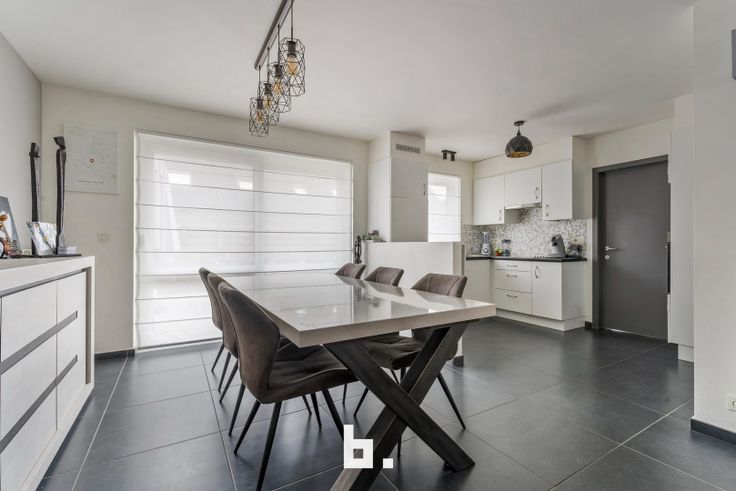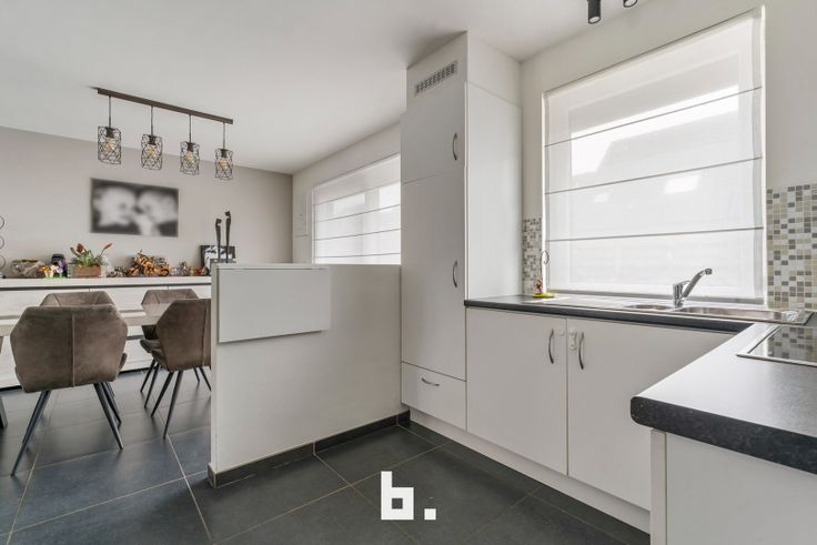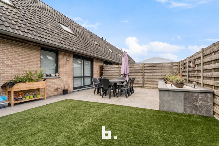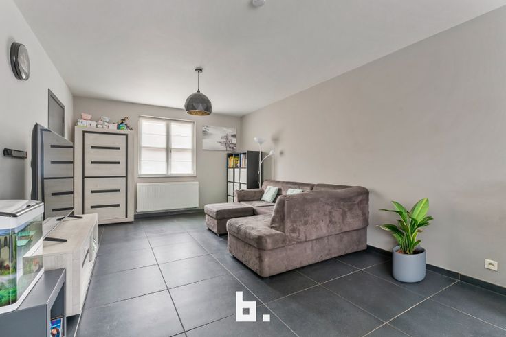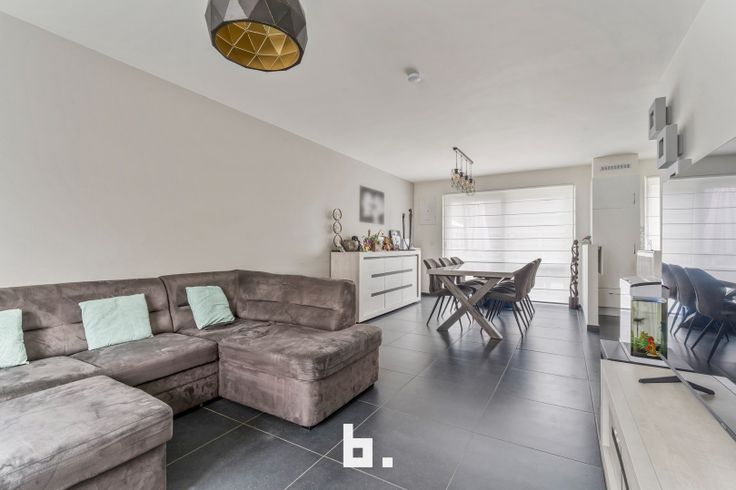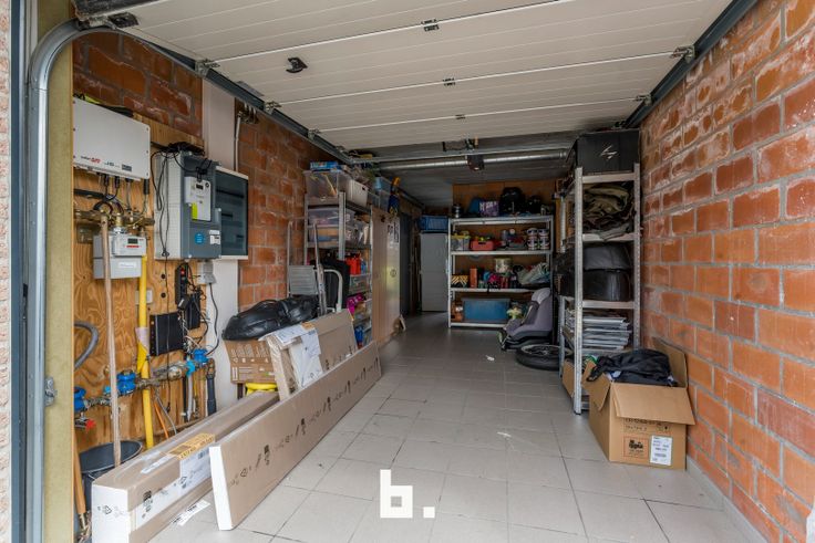 De indeling is als volgt: Inkom met ingemaakte kasten, afzonderlijk gastentoilet, lichtrijke woonkamer met eetplaats, open keuken uitgerust met fornuis, dampkap, koelkast en oven. Onder de trap bevindt zich een handige berging en langs de keuken heb je toegang tot de inpandige garage.
