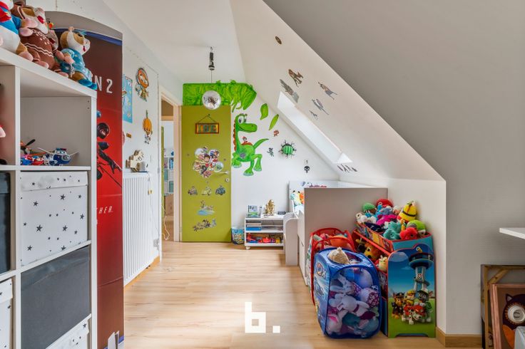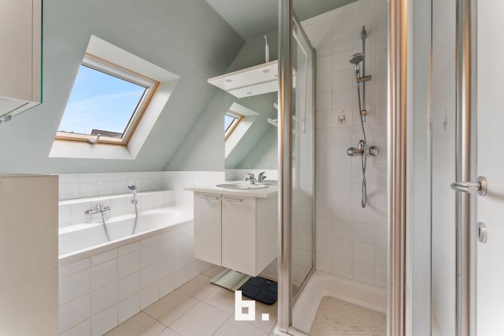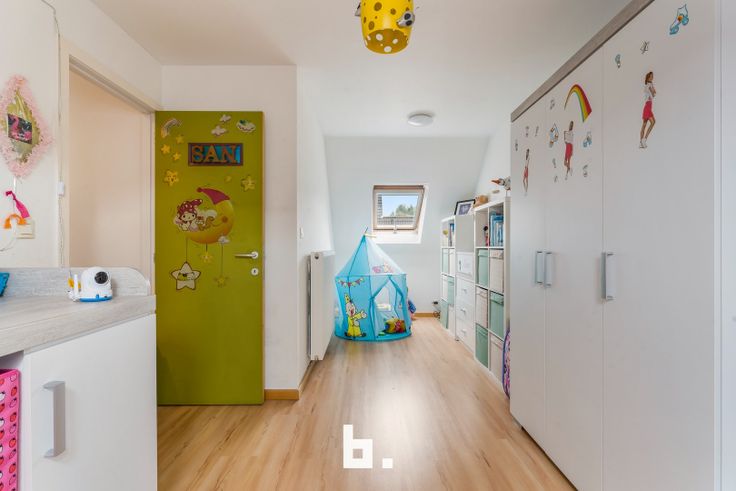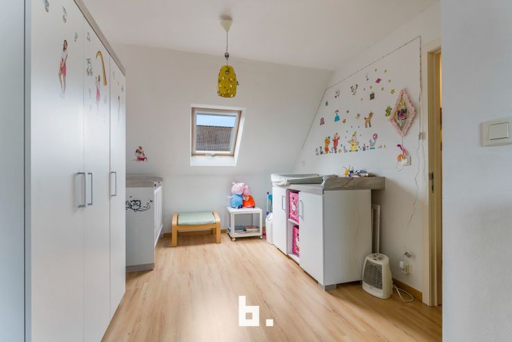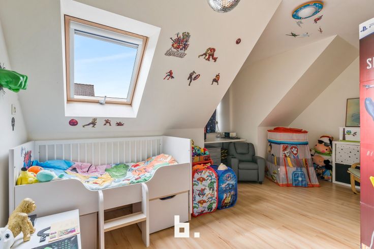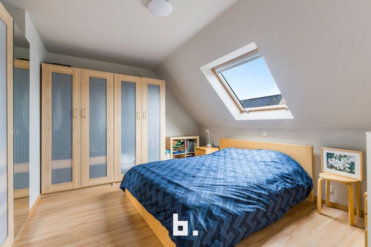 Op het verdiep zijn er 3 ruime slaapkamers (12, 12 en 16 m²), een badkamer voorzien van ligbad, douche en lavabo en een afzonderlijk toilet. De bergzolder is toegankelijk via een uitschuiftrap. De tuin is aangelegd met een terras en kunstgras. De woning is volledig instapklaar en energiezuinig.