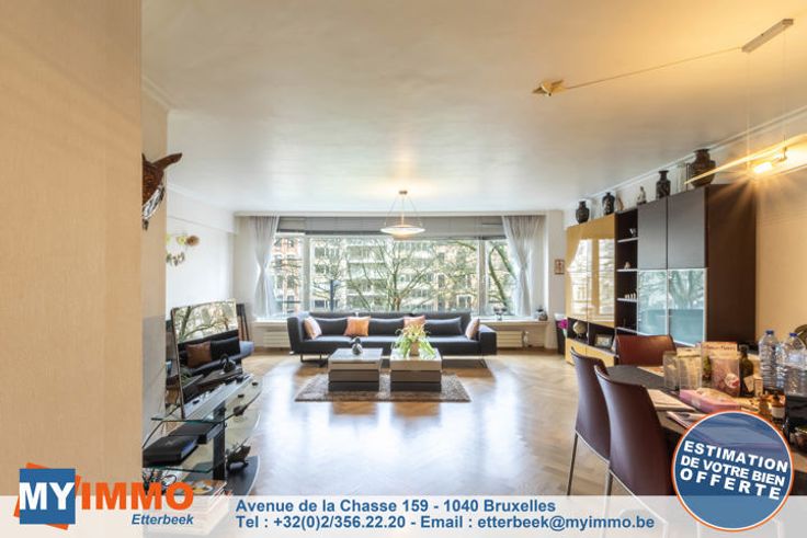 Square Montgomery, MYIMMO Etterbeek biedt dit appartement aan van +/- 104 m² bestaande uit een inkomhal van +/- 5 m² met vestiaire, gepantserde deur en toegangstelefoon, een grote woonkamer van +/- 35 m², een ingerichte keuken die toegang geeft tot een terras van +/- 4 m², 2 slaapkamers, de eerste van +/- 16 m² met een aangrenzend terras op het zuidwesten en de tweede van +/- 9 m²), een wasplaats, een apart toilet, een dressing en een douchekamer gerenoveerd in 2018. De pvc ramen aan de achtergevel (keuken en slaapkamers) dateren van 2014, die aan de voorgevel (woonkamer) zijn origineel maar nog steeds in onberispelijke staat, een kelder is inbegrepen in de prijs, de elektriciteit werd op norm gebracht in 2023 (certificaat geldig tot 2048), de lift van het condominium is op norm, nieuwe gemeenschappelijke gasketel vanaf 2022. De enige dingen die eventueel gedaan moeten worden zijn puur esthetisch en naar individuele smaak. Commercieel dossier (facturen, gelijkvormigheidsattest, PEB, enz.) op aanvraag. Onmiddellijk bezoeken! Meer huizen op www.myimmo.be - Deze advertentie is geen verkoopaanbod, maar een prijsvoorstel waarbij de eigenaar vrij is om elk aanbod, ongeacht de prijs, te accepteren of te weigeren.