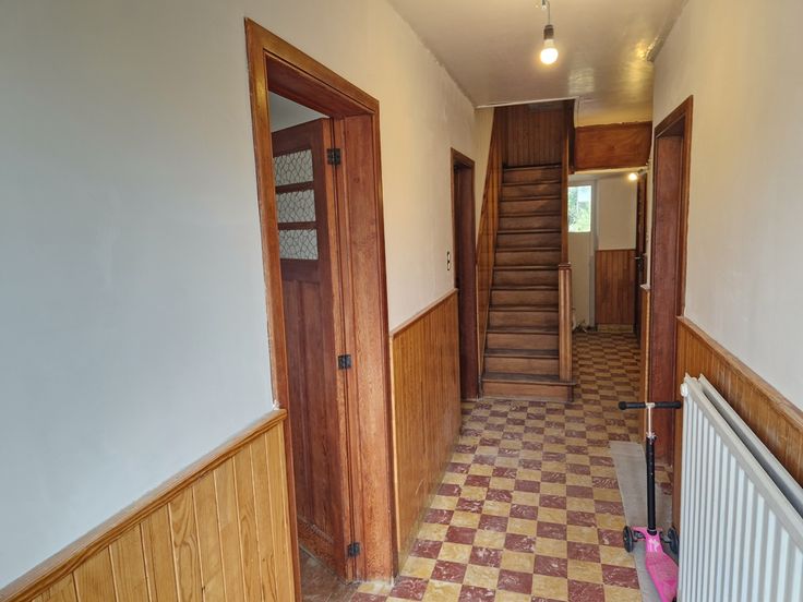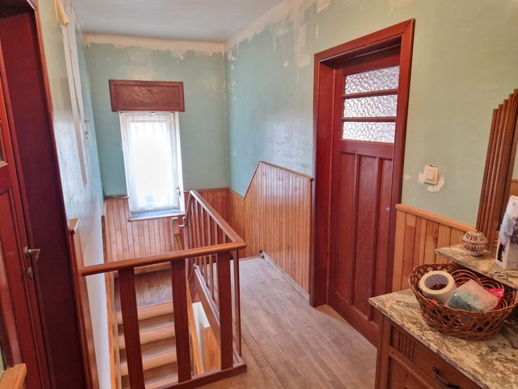 L’étage compte un pallier qui dessert 3 chambres, une salle de bain et un débarras.