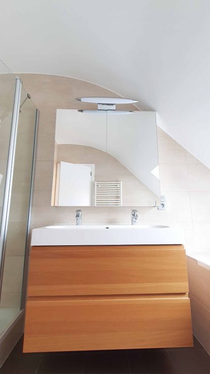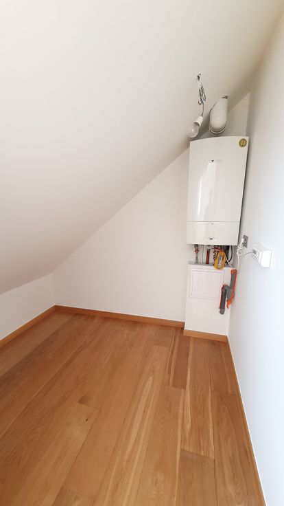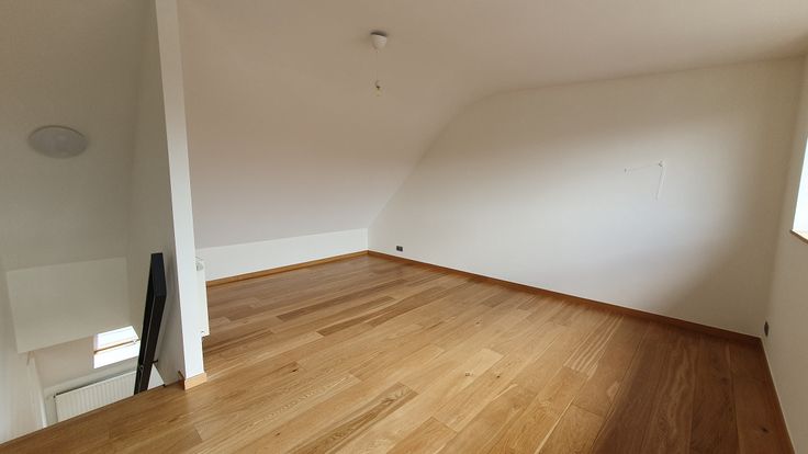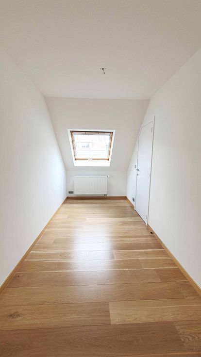 Vers geschuurd en verzegeld parket in alle kamers behalve badkamer en toilet. Houten ramen en velux, dubbele beglazing, conforme elektriciteit, PEB E, RU beschikbaar.