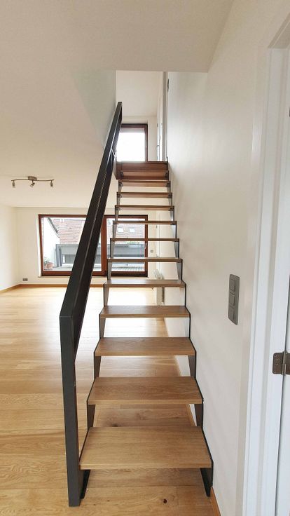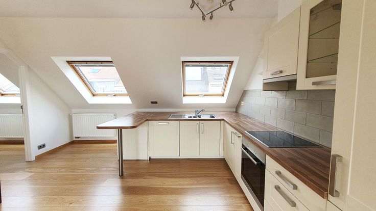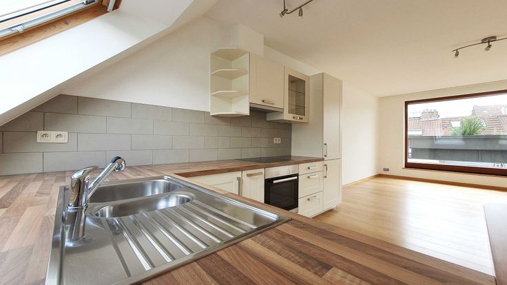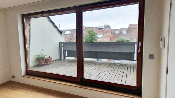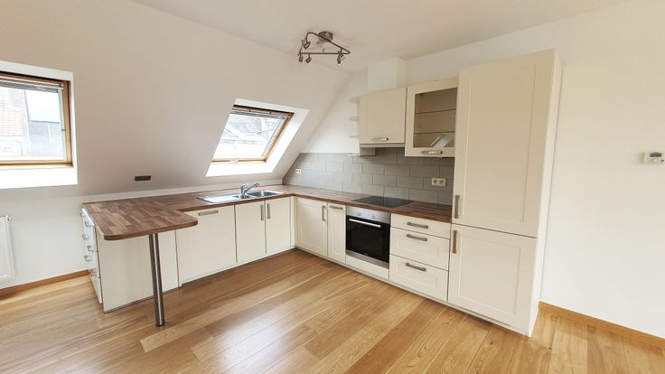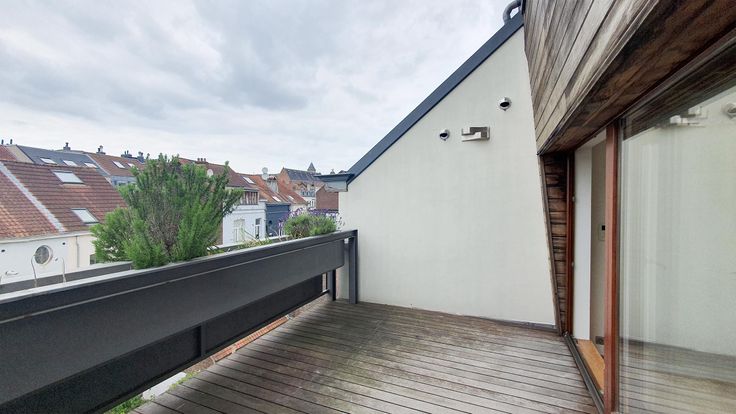 Het appartement is instapklaar en biedt op de eerste verdieping: lichte woonkamer van 33 m² met toegang tot het terras van 13 m² (ZW), een open, volledig ingerichte keuken (oven, vaatwasser, koelkast/vriezer), gastentoilet, kleine slaapkamer/kantoor van 10 m², op 2e verdieping: een lichte slaapkamer van 21 m² met elektronische stormluiken, lichte badkamer met Velux-raam, groot ligbad, douche, dubbele wastafel, toilet, kleine berging met individuele boiler (gas), aansluiting voor wasmachine.