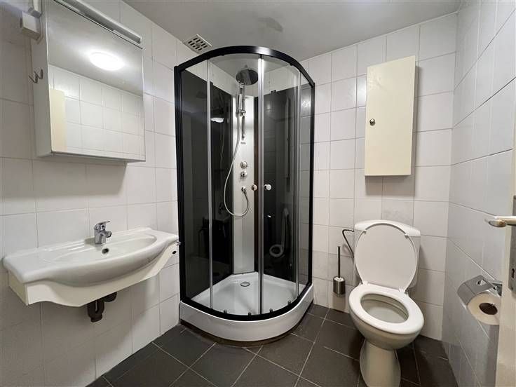 Verder aan de achterzijde van de woning bevindt zich een ruime veranda die kan dienen als eetkamer, bureau of extra leefruimte. Tot slot op het gelijkvloers is er nog een badkamer met nieuwe douchecabine, toilet en lavabo.
