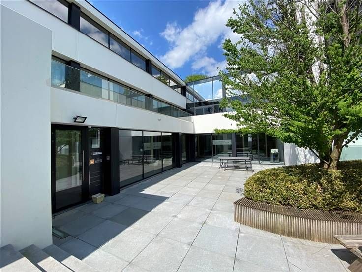 De binnentuin is omringd door de kantoren en biedt zo rust, desondanks de topligging langs de steenweg.