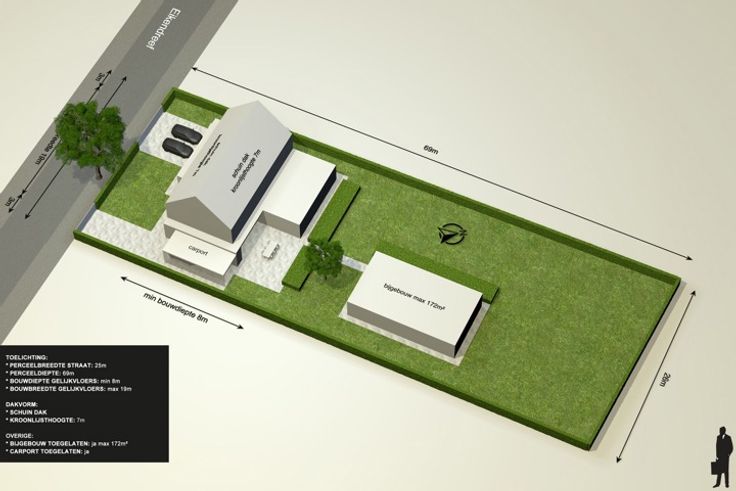 Mooie, ruime villagrond bestemd voor een vrijstaande eengezinswoning. De breedte van het terrein is 25 meter en heeft een diepte van maar liefst 69 meter!