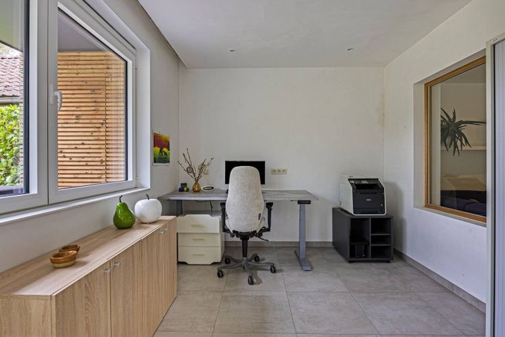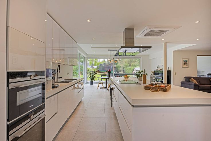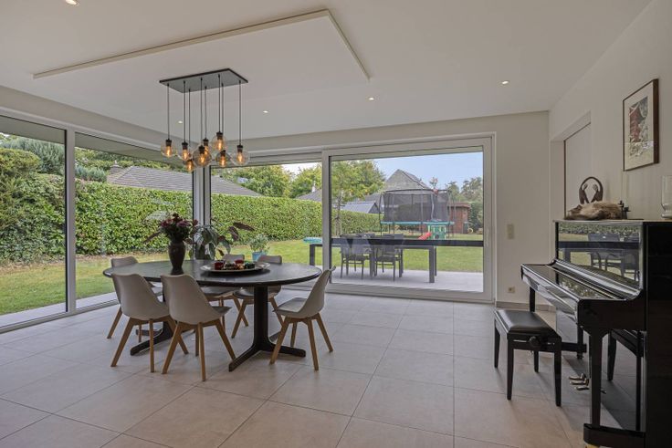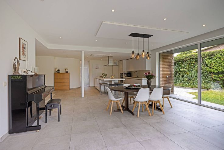 Goed gelegen in de groene rand rond Brussel, te Ternat, in de Kerkweg 18, karaktervol huis te koop van ± 250 m². Het huis biedt:- inkomhal met apart toilet,- ruime garage,- luxueuze woonkamer met design keuken voorzien van alle comfort en royaal keukeneiland (met ontbijthoek), eetkamer en zitkamer - met grote schuiframen met toegang tot en zicht op de onderhoudsvriendelijke tuin,- royaal zonneterras van ± 25 m²,- apart thuiskantoor of speelkamer,- ruime bijkeuken/wasplaats (= originele keuken van het huis voor de verbouwing),- op eerste verdieping 3 ruime slaapkamers, badkamer (ligbad, douche, 2 wastafels) en toilet,- op de 2de verdieping slaapkamer, speelkamer en recente douchekamer (douche, wastafel, toilet),- ± 300 m² Zuidelijke tuin, makkelijk in onderhoud, met praktische tuinberging,- EPC: A - 77 kWh/(m²jaar),- vloerverwarming, airco, zonne- en warmwaterpanelen,- alarmsysteem.