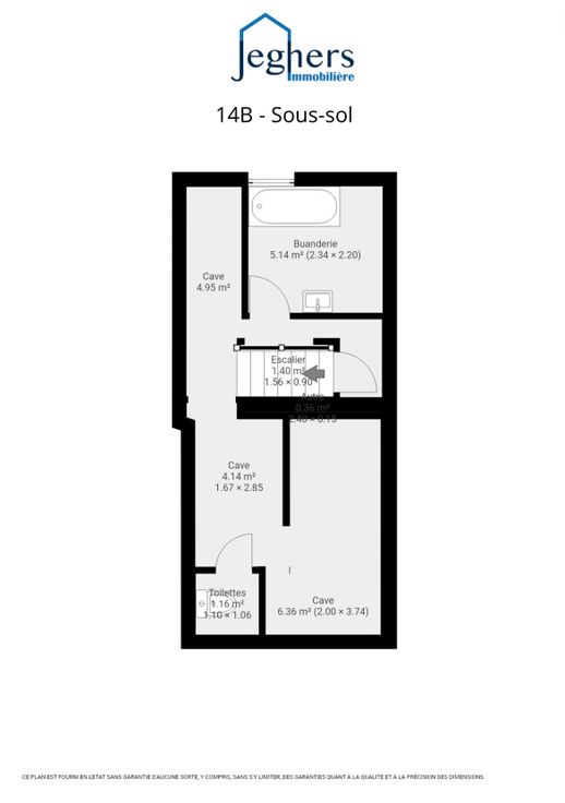 L’habitation n°14 B, de près de 75 m² habitables (PEB), comprend au rez-de-chaussée : deux pièces en enfilade (+/- 15 m² & +/- 11,5 m²) séparée par la cage d’escalier dont une avec la cuisine ainsi qu’une annexe salle de bains (+/- 3,5m²) (avec douche, lavabo et WC). À l’étage : deux chambres en enfilade (+/- 13 m² chacune). Au sous-sol : Une pièce buanderie (salle d’eau avec baignoire et partie WC), trois caves (+/- 16 m² au total) dont une comprenant une pièce WC.